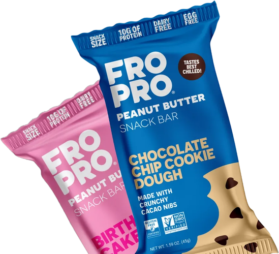 Let’s get real. FROPRO is an exceptionally great-tasting peanut butter bar. It's filled with organic, better-for-you ingredients that come together to create a blissfully craveable snack. Unwrap a FROPRO and crush your day with just enough of all the right stuff.